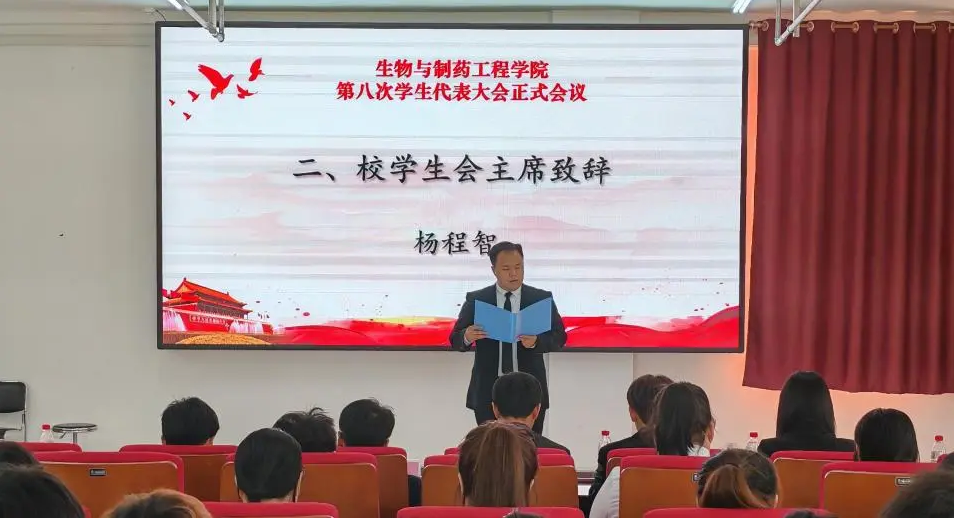 6月11日,生物与制药工程学院第八届学生代表大会于明德楼520室隆重召开。出席本次会议的有:学院党总支副书记李晨光、学生工作办公室副主任李晟毅、辅导员老师张壮、校学生会主席杨程智以及各班级学生代表。