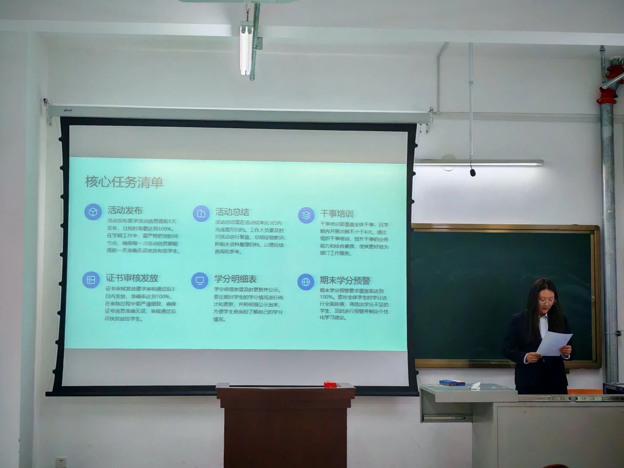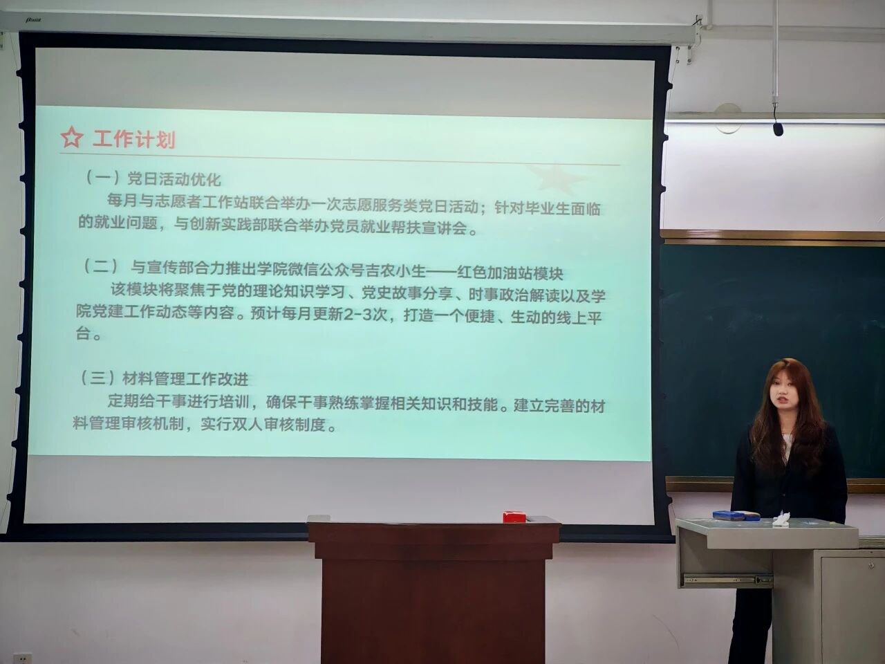 团委各部门负责人依次上台,对本学期部门工作展开了全面总结与深度复盘,详细阐述各项任务的推进情况。