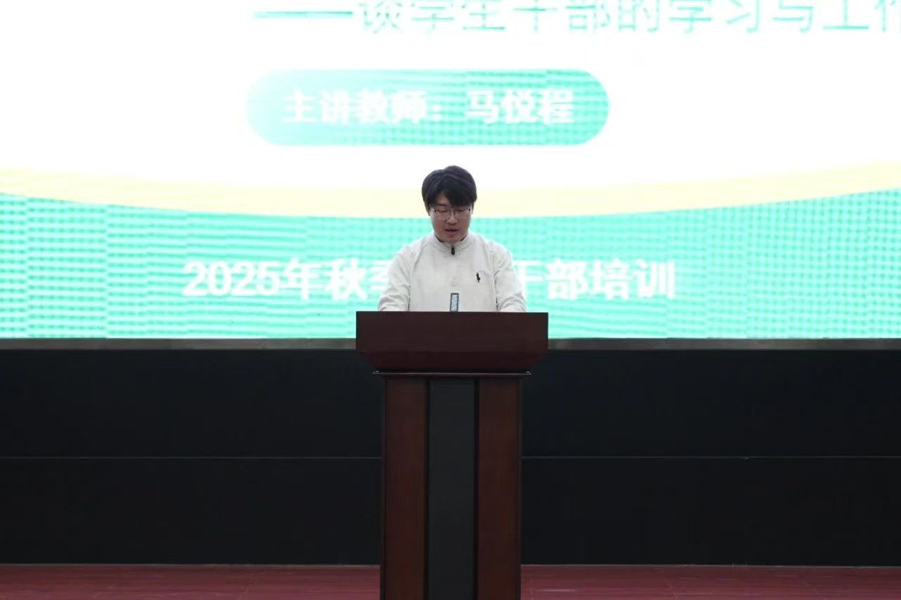 马悦程老师针对“学习与工作的平衡之道”进行分享,为学生干部破解双重角色带来的的现实难题提供方法。他指出,学习与工作并非对立,而是可以相互促进;建议运用科学方法管理时间,善用团队力量,明确事务优先级,尤其要保障核心学习时间,从而实现两者的有机统一与协同赋能。